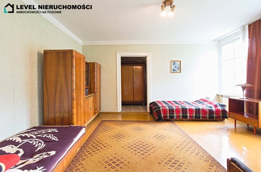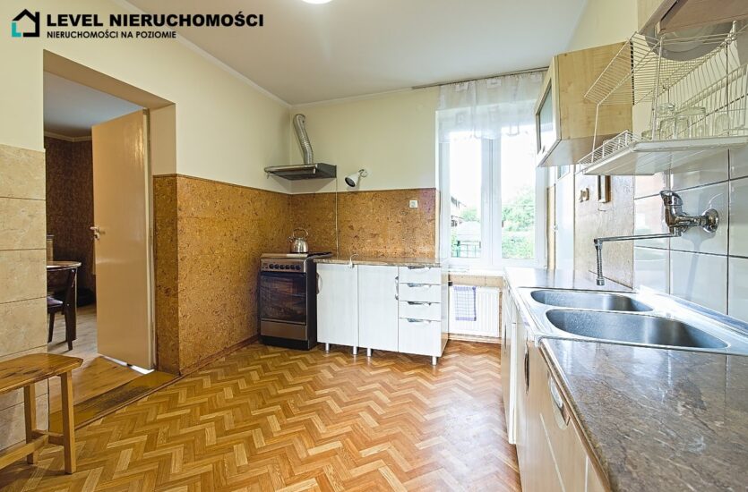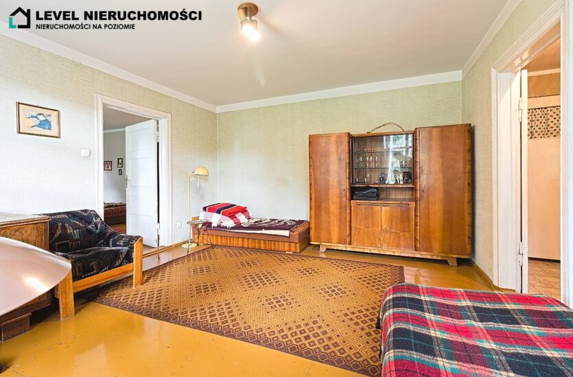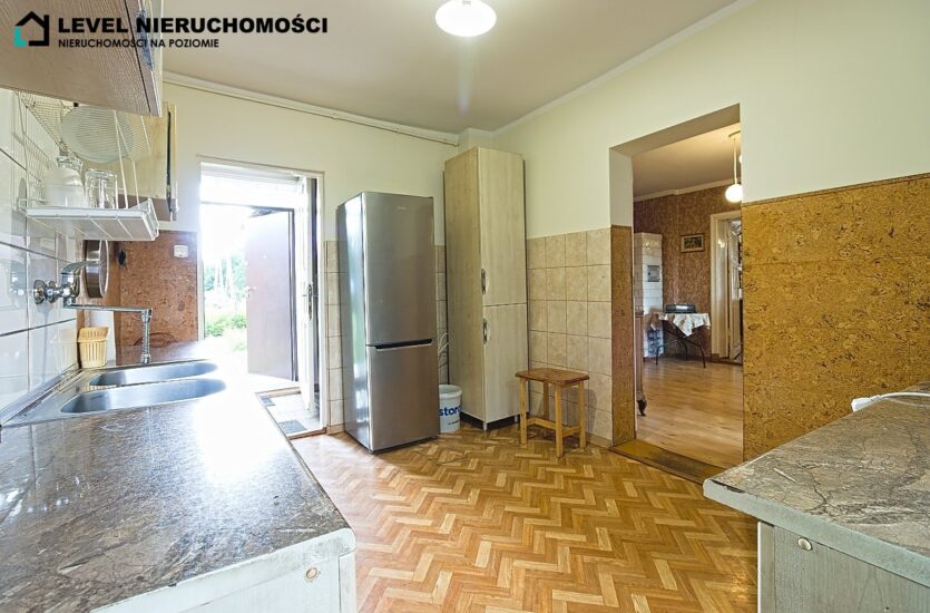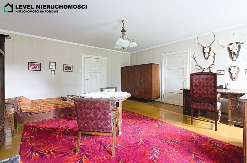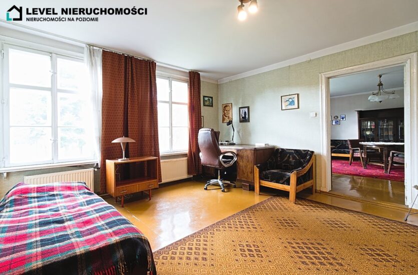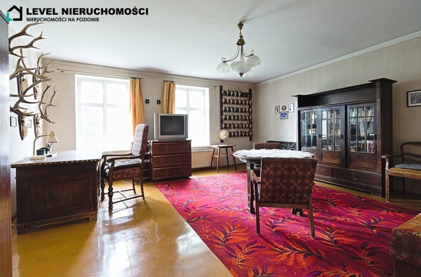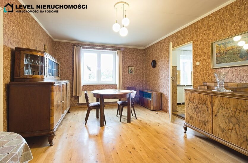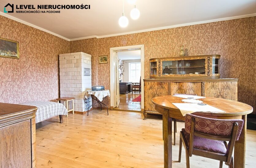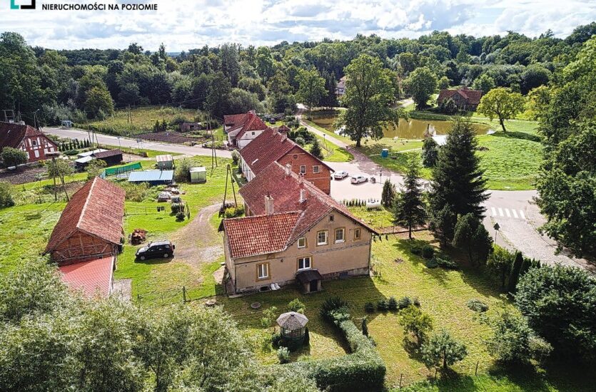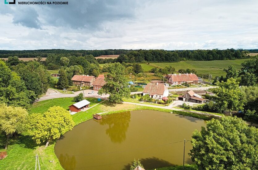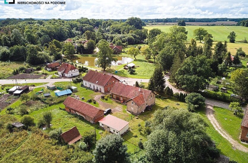 A three-room apartment for sale with an area of 91.4 m2 with a garden and two garages in SłobityThe property is located on the ground floor and has two entrances, one from the courtyard and the other from the garden. The apartment consists of three rooms, a bright kitchen, bathroom, toilet, utility room, and hallway. The property is heated by its own central heating boiler located in the basement. Municipal water and sewer are available. The apartment comes with a fenced plot of 952 m².2, which includes an orchard and a brick garage for two cars with a woodshed. The apartment includes a 14.2 m² basement.2 (28.4 m across the floor2). In front of the building is a large, landscaped pond with a pier, shelter, and a bus stop. The settlement also includes the historic Dohn family palace. It's an ideal place for those who value peace and quiet surrounded by nature.