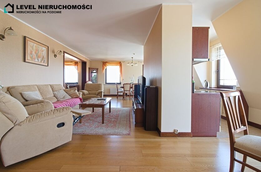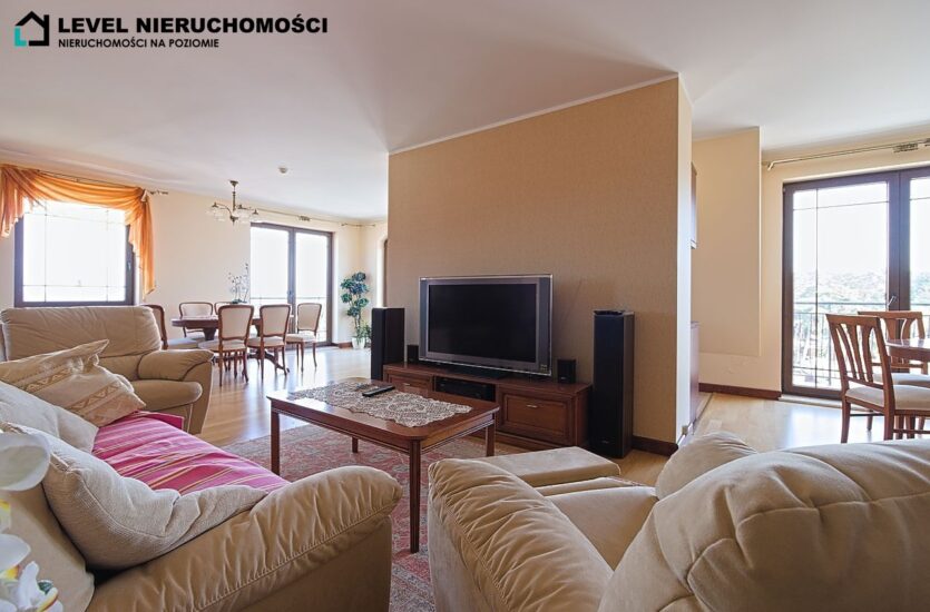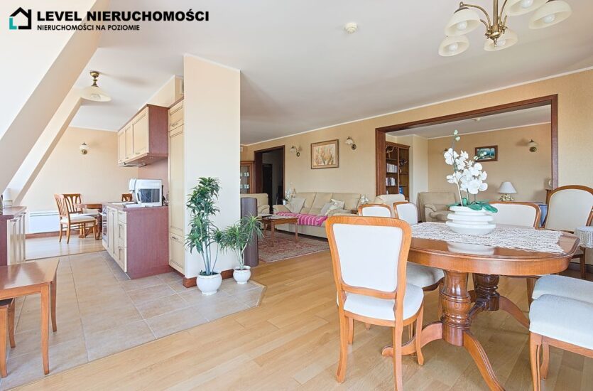 Posiadamy na sprzedaż apartament w Krynicy Morskiej przy ulicy Przyjaźni o powierzchni 137,7 m2 wraz z komórką lokatorską. Nieruchomość znajduje się na ostatnim piątym piętrze z widokiem na morze w budynku z windą oraz podziemnym parkingiem. Mieszkanie składa się z salonu z dwoma balkonami, aneksu kuchennego, trzech sypialni z czego dwie posiadają balkon, dwóch łazienek oraz przedpokoju. Apartament bardzo widny z wystawą okienną z trzech stron budynku (wschód, północ, zachód). Nieruchomość w pełni umeblowana oraz wyposażona we wszystkie sprzęty RTV oraz AGD. Apartament posiada wszystkie media miejskie oraz ogrzewanie elektryczne. Miesięczne opłaty do zarządcy w kwocie 1300 zł. Dodatkowo w cenie dwa miejsca parkingowe w podziemnej hali garażowej. Cały kompleks ogrodzony z bramami wjazdowymi oraz recepcją. Budynek znajduje się zaledwie 250 metrów od głównej plaży. W okolicy liczne restauracje, kawiarnie, sklepy, bary oraz obiekty rekreacyjne. Jest to jeden z największych, jak nie największy apartament tak blisko morza w Krynicy Morskiej.
